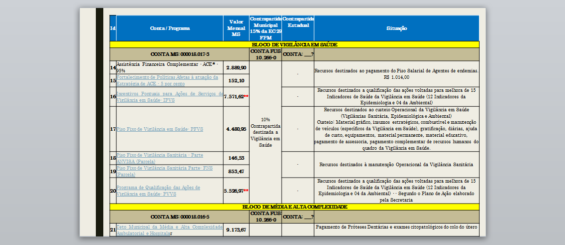 Logo a baixo esta todo conteúdo detalhado na Auditoria Publica.